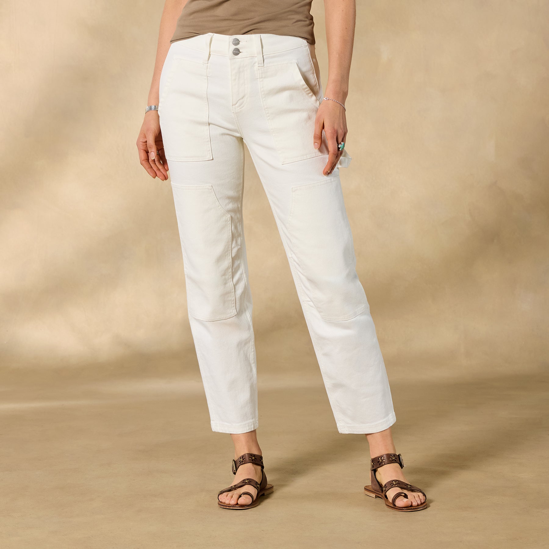 Here’s the fresh silhouette your denim collection needs NOW! With classic workwear details like oversized patch pockets and hammer loop. our Bodega Carpenter Jeans ALSO offer feminine. flattering details??including a tapered leg. double-button waist and just the right amount of stretch. Cotton/spandex. Machine wash. Imported. Sundance exclusive. Sizes 24?C32. 29 inseam; 11.75
