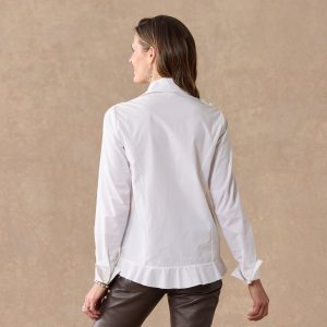 An enduring classic with fresh. au courant touches. this Victorian-inspired. button-up blouse features asymmetric cuffs. structured collar. unfinished hem. and a lovely trail of mixed media floral applique at the front. Cotton. Dry clean. Imported. Exclusive. Sizes XS (0?C2). S (4?C6). M (8?C10). L (12?C14). XL (16?C18). XXL (20?C22). Approx. 27.75l.